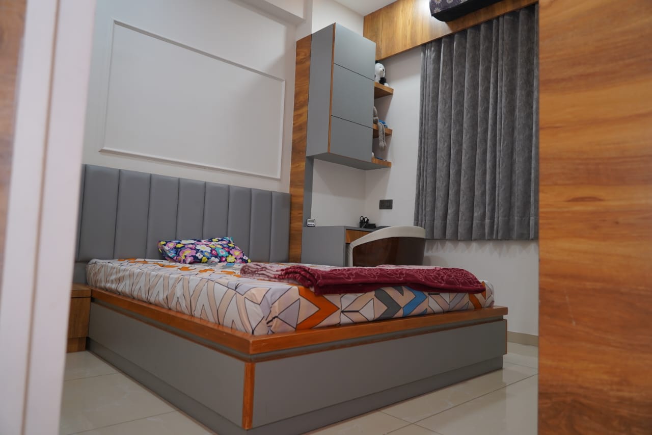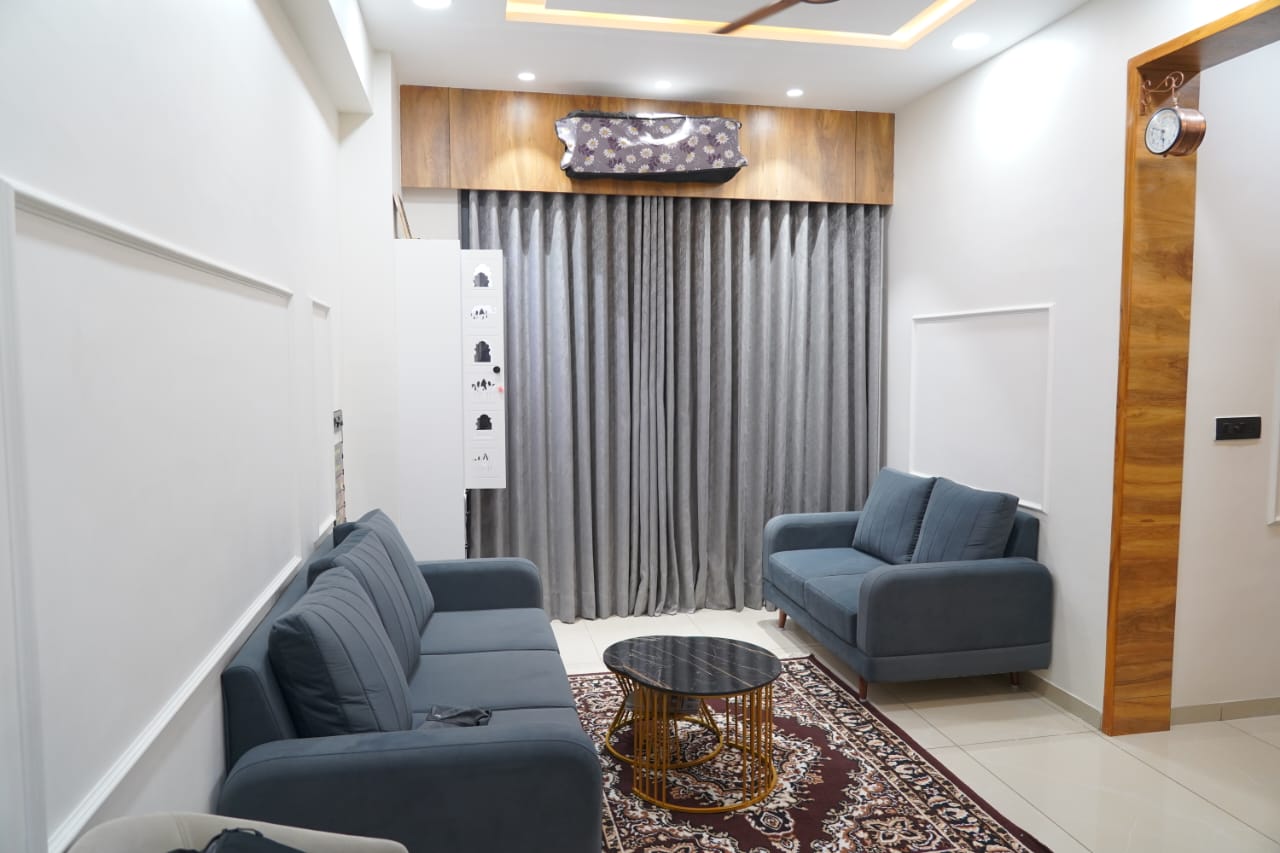 We delivered a fully furnished residential BHK flat under our turnkey solutions, covering interiors, utilities, fittings, and finishing.